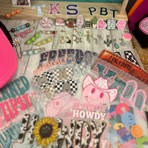 Elevate your boutique with a Hat Bar Starter Kit! Perfect for any fashion-forward business, our kit offers everything you need to get started! We have thousands of patches, chains, pins, charms, and hats with new items arriving weekly. You will receive a random assortment from our ENTIRE collection!