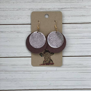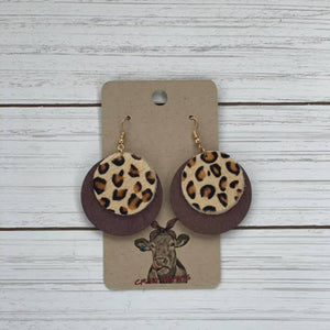 Circle Style Cowhide/ Wood Earrings