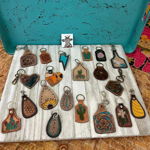Keep your keys safe and stylish with our Small Tooled Keychain! Handmade from premium tooled leather, it measures 3-4 inches and adds a touch of personality to everyday tasks. (No more lost keys, yay!)